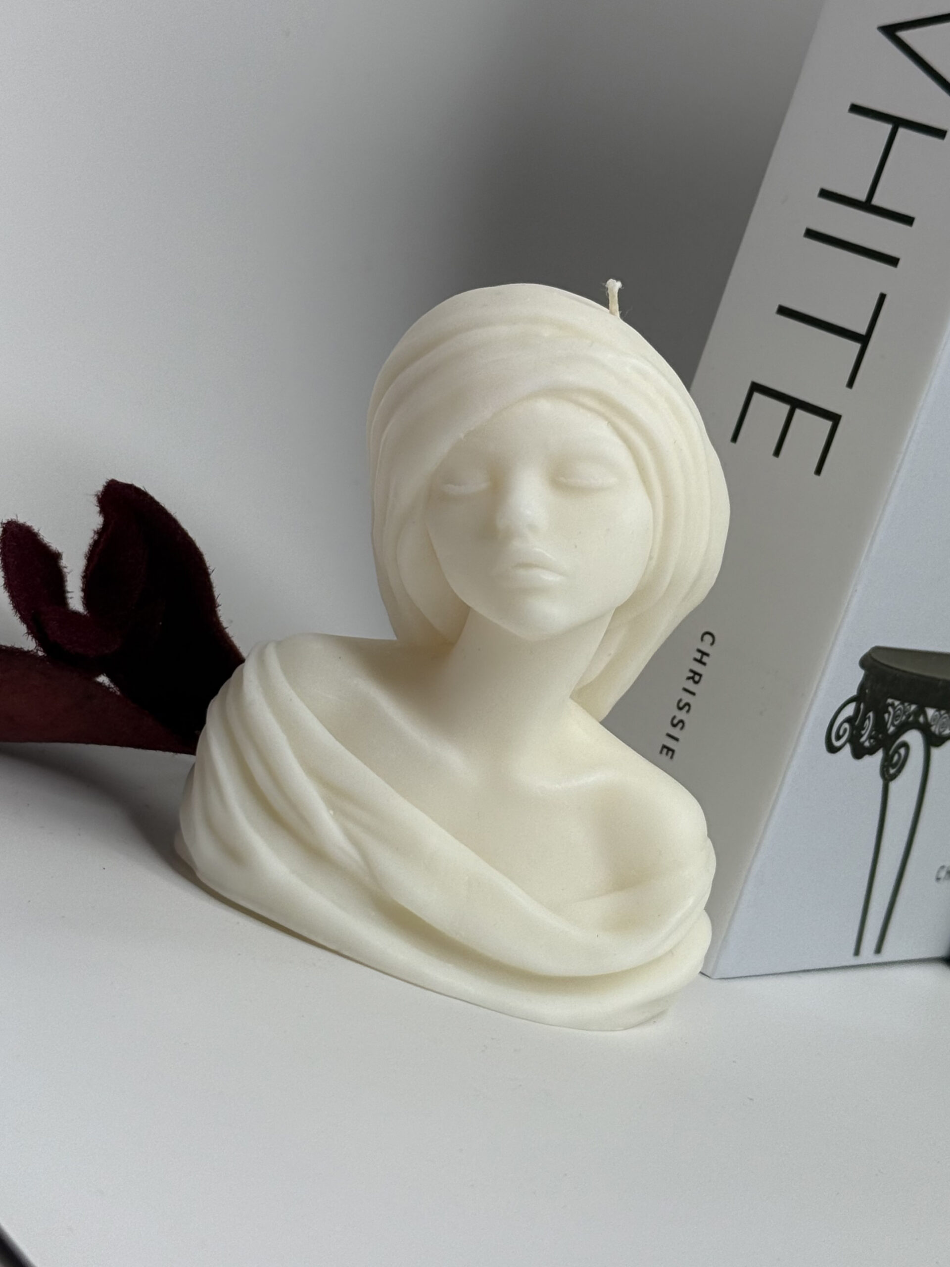 Świeca sojowa Elegancja Nocy to dekoracyjna forma inspirowana klasycznym pięknem i spokojem. Subtelna sylwetka popiersia.